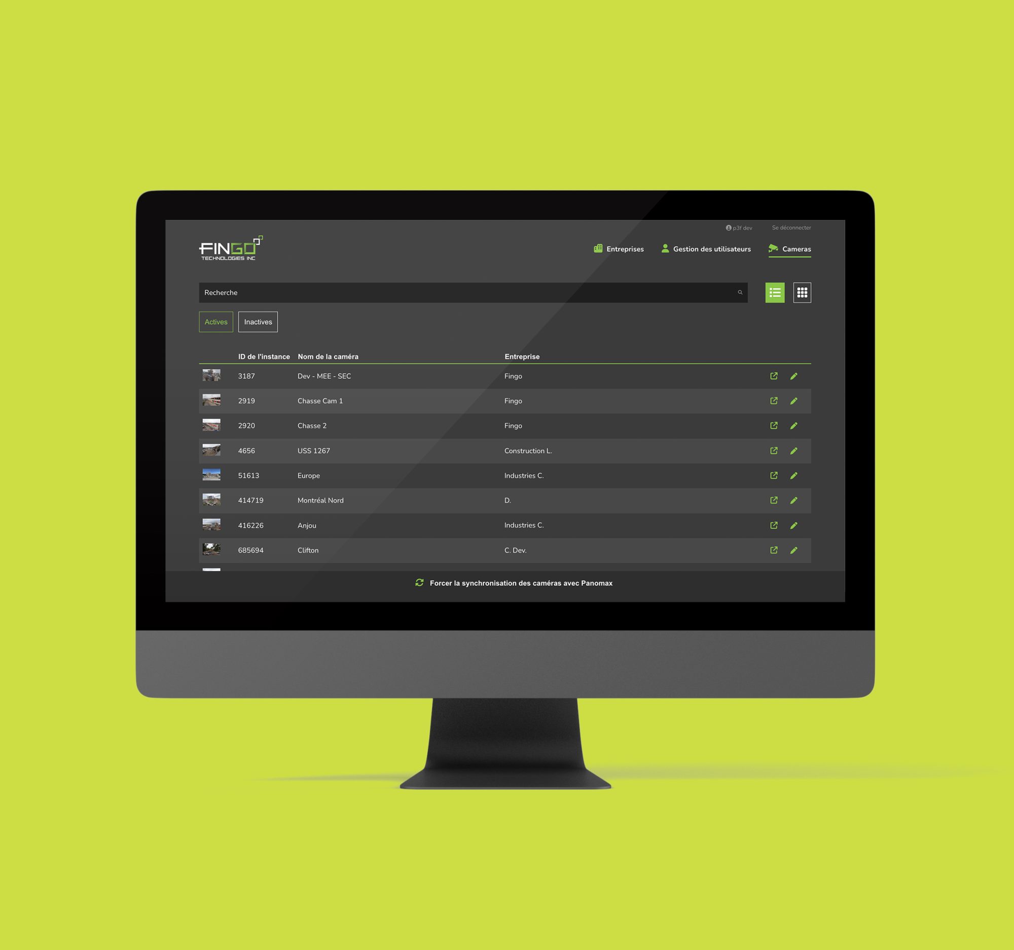 Pix est la plateforme web sécurisée de Fingo qui permet de donner accès à leur client à leur caméras en temps réel.