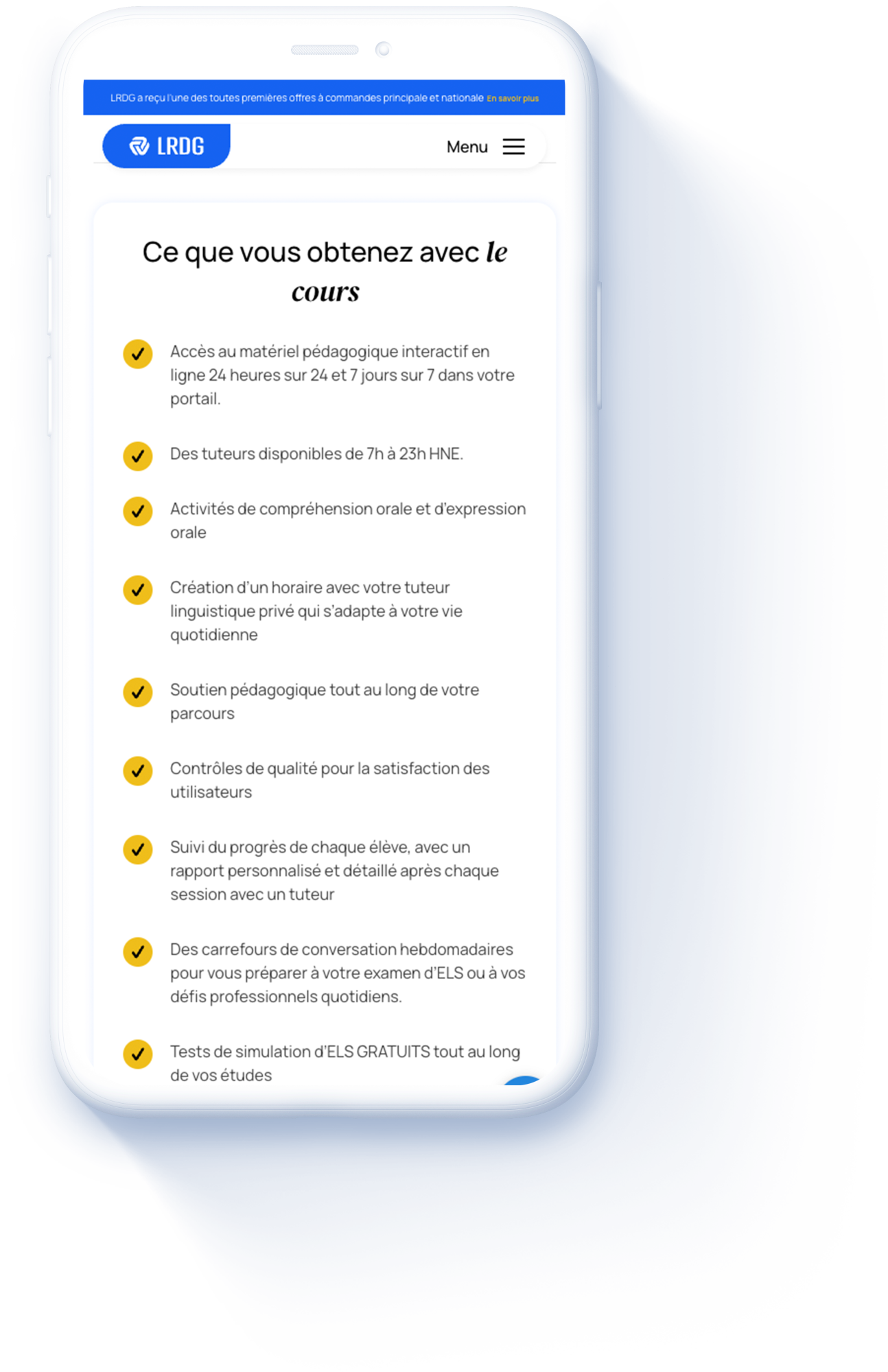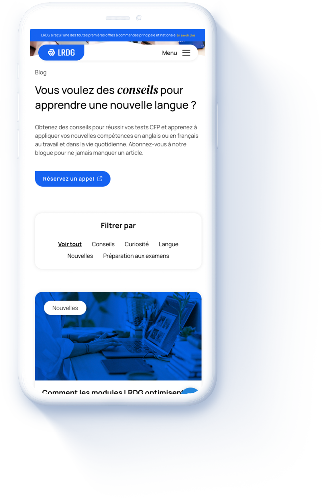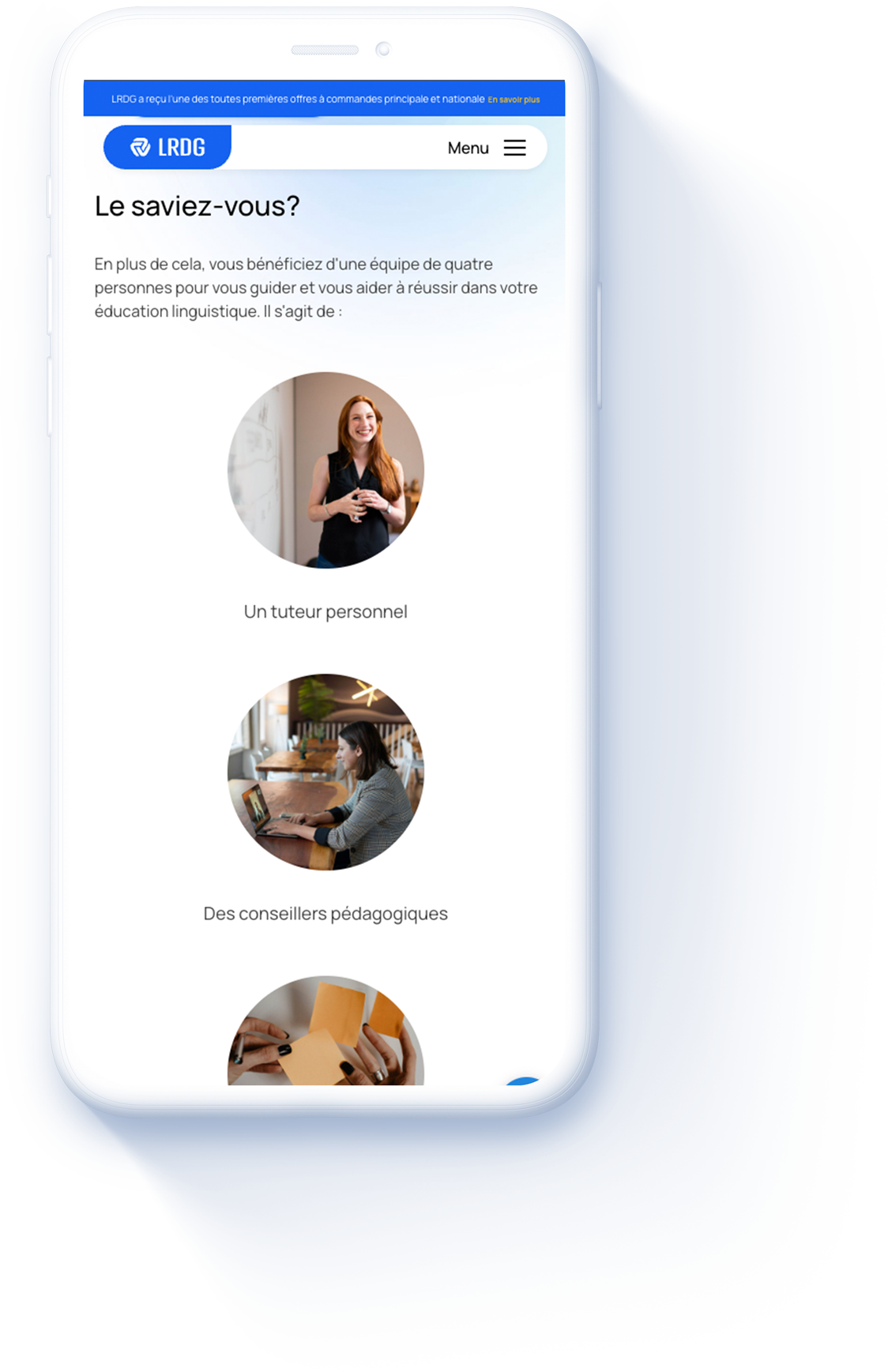 En tant que fournisseur de cours de langue de premier plan, LRDG dispose des ressources et du personnel expérimenté qui vous aideront à réussir, ainsi que d'une méthodologie éprouvée.